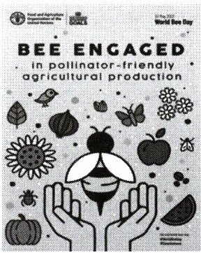 Every year on the twentieth of May, it’s World Bee Day. It’s a day to thank bees for all they do. Without bees, we wouldn’t have any food! When bees fly from plant to plant, they carry pollen(花粉). The pollen makes new plants grow. It is said that three-fourths of the world’s flowering plants and about 35 percent of the world’s food crops depend on bees and other animals to grow. Bees not only help flowers grow, but they also help fruit and vegetables grow.