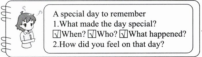 每一天都是生活的馈赠,用心感受,你会发现凡事皆为宝藏。假如你是李华,你校英语报社正在举行主题为"A special day to remember"的征文活动。请参考图文信息,积极投稿。
