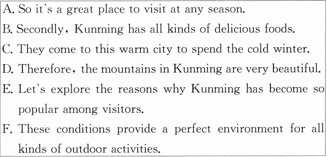 17 People visiting Kunming can enjoy its natural beauty and all kinds of fruits and flowers all year round. People of all ages can enjoy outdoor activities no matter what the season is.B