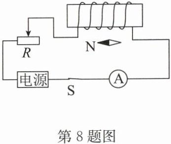 8. 闭合如图所示电路的开关,小磁针静止时指向如图,则(