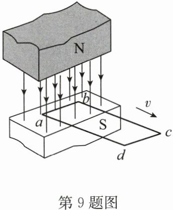 9. 如图所示,闭合导线框 $ abcd $ 的一部分处于磁场中,将导线框沿图示方向拉出,则(