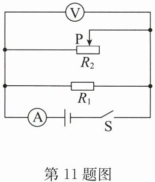 11. 如图所示,电源电压为 9V,定值电阻 $ R_1 $ 的阻值为 6Ω,电流表的量程为 0~3A,电压表的量程为 0~15V,滑动变阻器 $ R_2 $ 标有“20Ω 2A”字样. 闭合开关,在不损坏电路元件的情况下,下列判断正确的是(