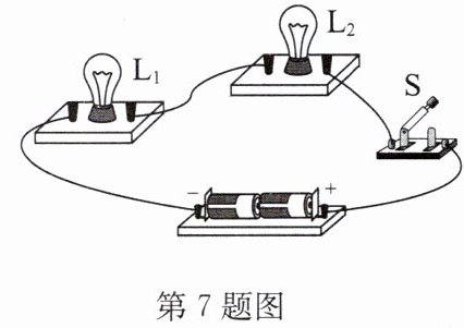 7. 将两只额定电压相同的小灯泡 $ L_1 $、$ L_2 $ 串联在电路中,如图所示. 闭合开关后,发现灯 $ L_1 $ 较亮,灯 $ L_2 $ 较暗,其原因是(