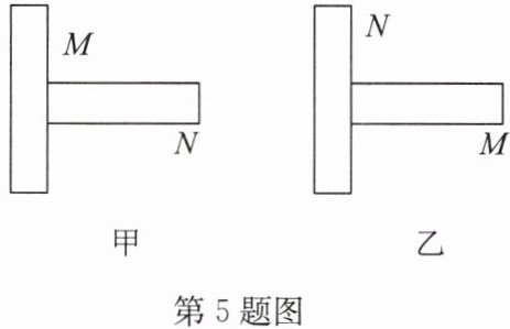 5. 有外形相同的两根钢条$M$、$N$,按图甲、图乙两种方式接触时,它们之间都有较大的吸引力。则下列推断正确的是(