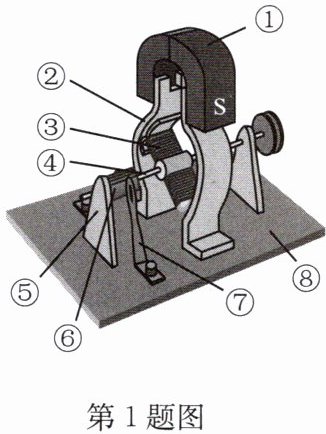 安装在支架上,注意使线圈和转轴能较好地转动.(3) 用螺钉把电刷(铜片)固定在底座上,同时使电刷与转轴上的