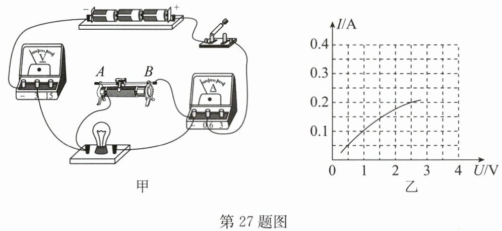 27. (8 分)在“测定小灯泡电功率”的实验中,小灯泡的额定电压为 2.5V.
