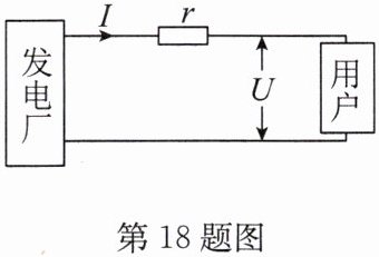 18. A 点拨:输电电流为 $ I $,输电线的总电阻为 $ r $,通电时间为 $ t $,则因输电线发热而损耗的电能 $ W_{损} = Q = I^{2}rt $.