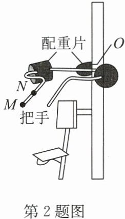 2. 如图为坐式推肩训练器.健身杆能绕O点处的轴上下转动,配重片可增减,人在座椅上双手紧握把手竖直向上推杆以锻炼肩部肌肉.下列说法正确的是(