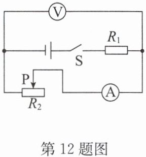 12. 在如图所示电路中,电源电压不变,R₁是阻值为90Ω的定值电阻,R₂为滑动变阻器,闭合开关S,滑动变阻器接入电路的阻值由R₀增大到5R₀,电流减小了一半,定值电阻R₁的功率变化了2.7W,此过程中(