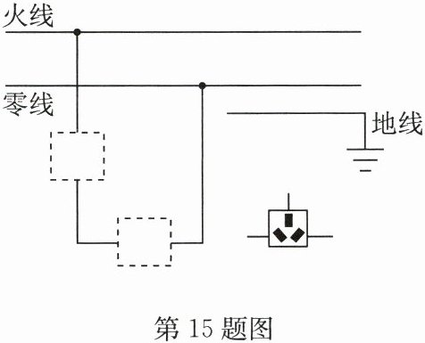 15. (6 分)请在图中虚线框内画出开关 S 和电灯 L 的符号,并用笔画线代替导线将三孔插座接入电路.
