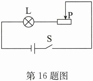 16. (15 分)如图所示电路,灯 L 标有“6V 3W”字样,开关闭合后,当滑动变阻器的滑片 P 位于最左端时,灯 L 正常发光;当滑片 P 位于中点时,灯 L 的功率为 $ P_0 $;当滑片 P 位于最右端时,灯 L 的功率为 $ \frac{9}{16}P_0 $.电源电压不变,不考虑温度对灯丝电阻的影响.求: