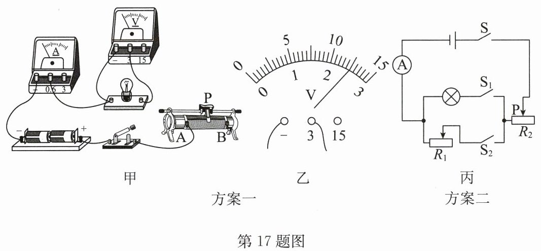 17. (12 分)实验室里有一小灯泡的铭牌模糊不清,只能看清小灯泡的额定电流 $ I_{额} = 0.3A $,为了测出该小灯泡的额定功率,小明和小华分别设计了两种不同的测量方案,请你帮助完善.