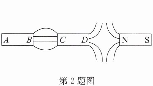 2. 三个磁体相邻磁极间的磁感线分布如图所示,D 端为