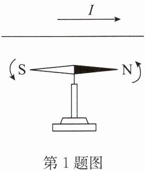1. 如图所示,将一根直导线放在静止小磁针的正上方,并与小磁针平行,接通电路后,观察到小磁针偏转,这就是著名的