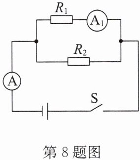 8. (2025·云南)如图所示的电路中,电源电压$U = 6V$,电阻$R_{2}=5Ω$.闭合开关$S$,电流表$A_{1}$的示数$I_{1}=0.3A$.求