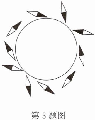 3. 在一个圆纸盒内有一个条形磁体,圆纸盒外放着一些小磁针,各个小磁针静止时的指向如图所示(黑色表示 N 极),根据圆纸盒外小磁针的指向,请你在圆纸盒内画出条形磁体,并标出条形磁体的 N、S 极.
