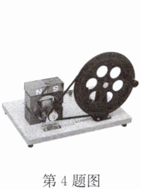 4. 如图所示是手摇发电机模型,教师快速摇动手柄,使线圈在磁场中做