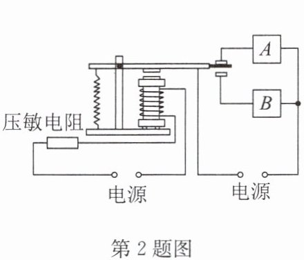 2. 小明发明了一种自动报警器,其电路图如图所示. 当有人踩在压敏电阻上时,压敏电阻的阻值减小,电磁铁的磁性