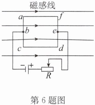 6. 矩形铜线框在某磁场中的位置如图所示,ab、bc、ed和fe段都受到该磁场的作用力,下列受到该磁场的作用力方向相同的是(