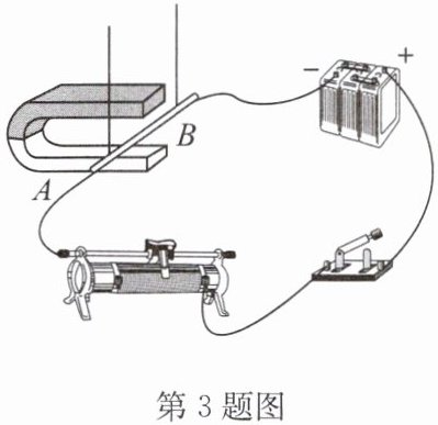 3. 如图所示,闭合开关,观察到铝杆AB运动起来,说明磁场对通电导体有