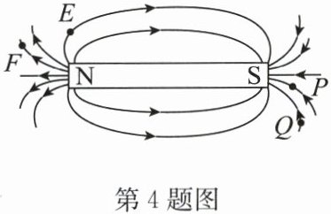 4. 如图所示是条形磁体周围的磁场,E、F、P、Q 四点中,磁场最强的是(