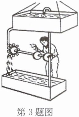 3. 不符合 高处水池中水的重力势能转化为水的动能,其中只有部分动能转化为叶轮的动能,而叶轮的动能部分用来打磨工件及转动部分摩擦做功,不会全部提供给水泵用来提升水,该设计违背了能量守恒定律