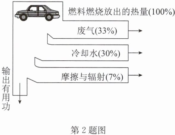 2. 一台单缸四冲程汽油机的能量流向如图所示,则该汽油机的热机效率(指热机中用来做有用功的能量与燃料完全燃烧所释放的能量之比)为