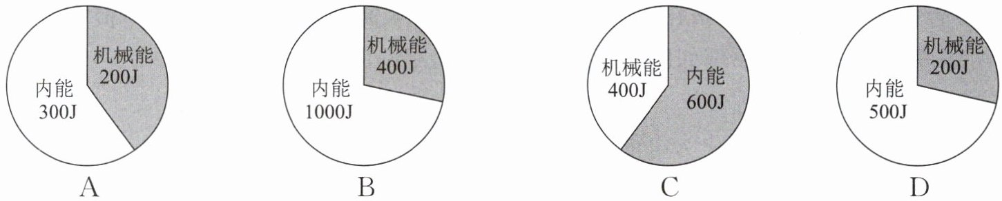 6. 已知某电动机的工作效率为40%,其输出总能量参数如图所示(有用的能量用灰色底表示). 则图中输出能量的形式以及大小最符合要求的是(