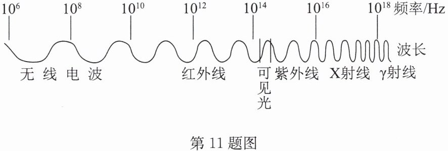 11. 电磁波的频率与波长的大致分布如图所示,下列说法正确的是 (