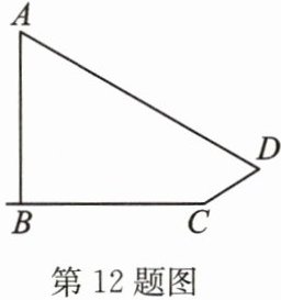 12. 如图,学校旗杆附近有一斜坡CD,小明准备测量旗杆AB的高度,他发现某一时刻旗杆AB的影子恰好落在水平地面和斜坡的坡面上,此时小明测得水平地面上的影长BC=12 m,斜坡坡面上的影长CD=4 m,太阳光线AD与水平地面成30°角,斜坡CD与水平地面BC的延长线成30°角.求旗杆AB的高度.(结果保留一位小数,参考数据:√3≈1.732)
