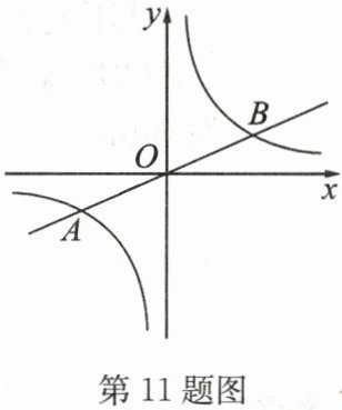 11. 如图,在平面直角坐标系 $ xOy $ 中,正比例函数 $ y=\frac{1}{2}x $ 的图象与反比例函数 $ y=\frac{k}{x} $ 的图象交于 $ A(a,-2) $,$ B $ 两点。