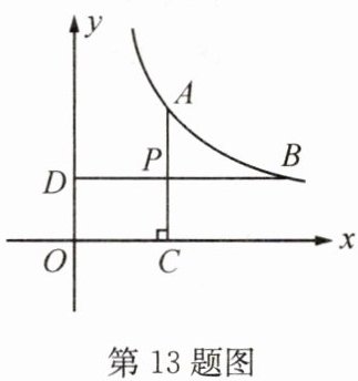 13. 如图,点$A$,$B$在双曲线$y = \frac{k}{x}$上,$AC ⊥ x$轴于$C$,$BD ⊥ y$轴于$D$,$AC$交$BD$于点$P$。若$P$为$AC$的中点,且$△ ABP$的面积为$6$,求$k$的值。