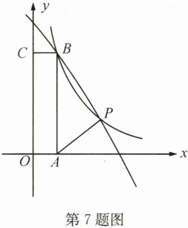 7. 如图,矩形 OABC 的顶点 A,C 分别在 x 轴、y 轴上,双曲线 $ y = \frac{k}{x} $ 过 P(4,3)和 B(m,n)(0 < m < 4).