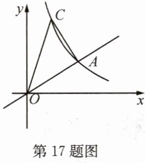17. 如图,直线 $ y = \dfrac{1}{2}x $ 与双曲线 $ y = \dfrac{k}{x} (k > 0) $ 交于点 $ A(4,m) $。