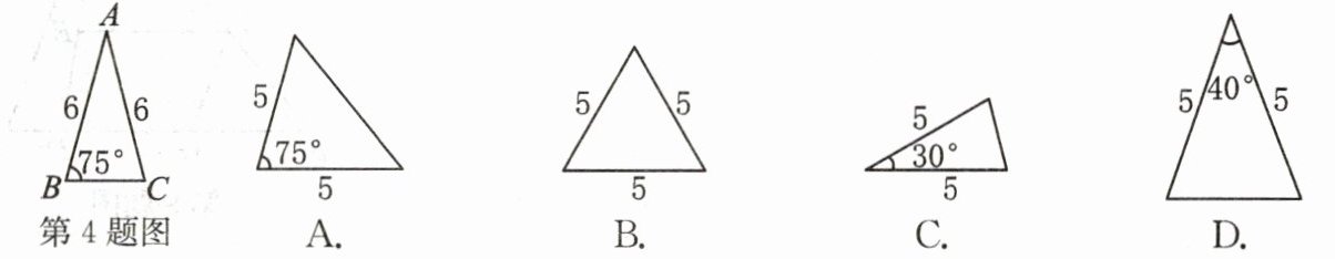 4. 如图,下列四个三角形中,与$△ ABC$相似的是(