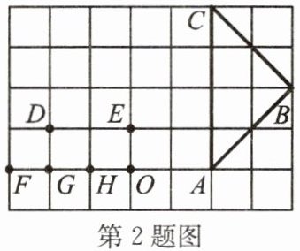 2. 如图,若 A,B,C,D,E,F,G,H,O 都是$5×7$方格纸中的格点,为使$△ DME∽△ ABC$,则点 M 应是 F,G,H,O 四点中的(