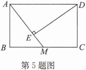 5. 如图,在矩形$ABCD$中,$AB = 2,BC = 3,M$是$BC$的中点,$DE⊥AM$于点$E$,求$DE$的长.