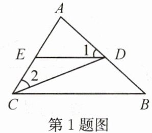 1. 如图,若$∠1 = ∠2 = ∠B$,则$△ACD∽△$