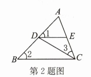 2. 如图,在$△ABC$中,点$D$在$AB$边上,点$E$在$AC$边上,且$∠1 = ∠2 = ∠3$,则与$△ADE$相似的三角形有(