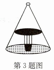 3. 如图,这是圆桌正上方的灯泡(看作一个点)发出的光线照射到桌面后在地面上形成阴影的示意图.已知桌面直径为$2\ \mathrm{m}$,桌面离地面$1\ \mathrm{m}$.若灯泡离地面$3\ \mathrm{m}$,则地面上阴影部分的面积为(
