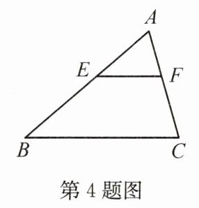 4. 如图,已知$EF // BC$,$S_{△ AEF} = 18\ \mathrm{cm}^2$,$S_{\mathrm{梯形}EBCF} = 80\ \mathrm{cm}^2$,则$AE : EB$的值为