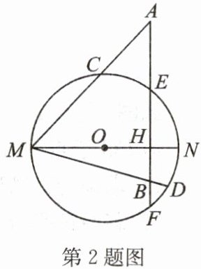 2. 如图,弦$EF⊥$直径$MN$于点$H$,弦$MC$的延长线交$EF$的反向延长线于点$A$,求证:$MA· MC=MB· MD$.