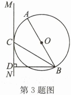 3. 如图,$AB$是$\odot O$的直径,$BC$是$\odot O$的弦,直线$MN$与$\odot O$相切于点$C$,过点$B$作$BD⊥ MN$于点$D$.