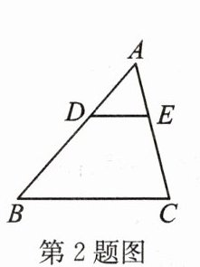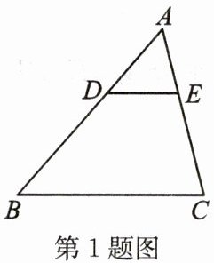 1. 如图,在$△ ABC$中,$DE// BC$,若$AD = 1$,$DB = 2$,则$\frac{DE}{BC}$的值为(
