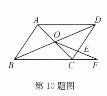 10. 如图,在平行四边形$ABCD$中,$AC$,$BD$相交于点$O$,点$F$在$BC$的延长线上,$OF$交$CD$于点$E$,若$OE = EF$,则$BF:CF$等于(