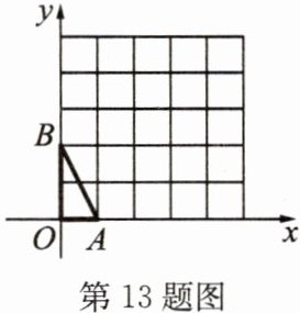 13. 如图,在$5×5$的方格纸上建立直角坐标系,已知$A(1,0)$,$B(0,2)$,试以格点为顶点作$△ ABC$与$△ OAB$相似(相似比不为$1$),点$C$的坐标可以为