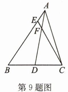 9. 如图,在$△ ABC$中,$AD$是$BC$边上的中线,$F$是$AD$边上一点,且$\frac{AE}{EB}=\frac{1}{6}$,射线$CF$交$AB$于点$E$,则$\frac{AF}{FD}$等于(
