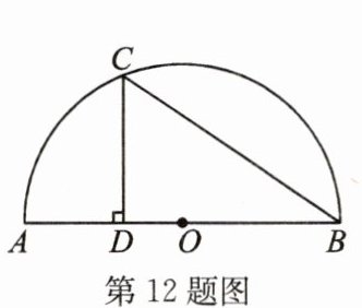 12. 如图,$AB$是半圆$O$的直径,$CD⊥ AB$于点$D$,$AD = 4cm$,$DB = 9cm$,则$CB=$