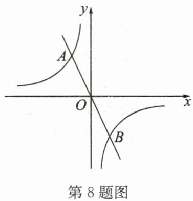 8. 如图,正比例函数$y = - 2x$与反比例函数$y=\frac{k}{x}$的图象相交于$A(m,2)$,$B$两点。