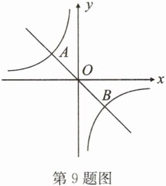 9. 如图,直线$y = kx(k<0)$与双曲线$y=-\frac{2}{x}$相交于$A(x_{1},y_{1})$,$B(x_{2},y_{2})$两点,求$3x_{1}y_{2}-8x_{2}y_{1}$的值。